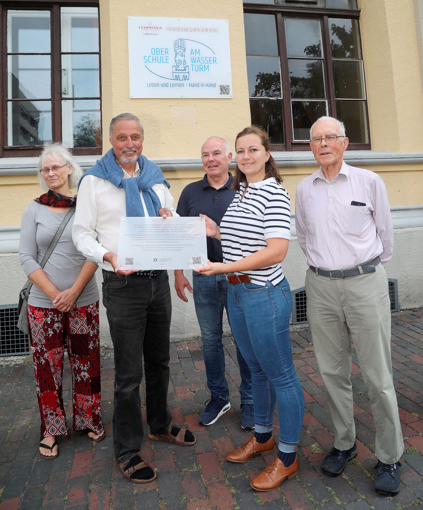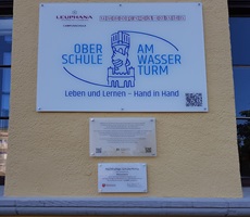 Übergabe des Hinweisschildes für die Schule am Wasserturm im Aug. 2022